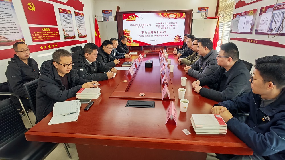 為深入學(xué)習(xí)貫徹黨的二十屆四中全會精神,推動黨建與業(yè)務(wù)深度融合,近日,銷售公司黨支部第三黨小組與河南禹拓商貿(mào)有限公司黨支部聯(lián)合開展“黨建引領(lǐng)聚合力,共建共學(xué)促發(fā) 展”主題黨日活動,雙方黨員代表參與此次活動。