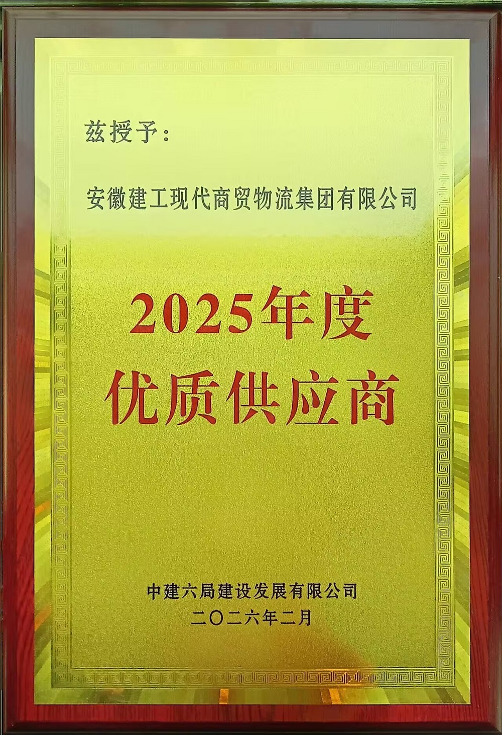 公司榮獲中建六局建設發(fā)展有限公司“2025年度優(yōu)質供應商”榮譽稱號